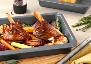 Když jde o sváteční oběd, nemělo by chybět pečené maso. Speciálně v období jara je ideální čas na jehněčí a králičí maso nebo na jakoukoliv drůbež. Pochutnáte si i na zdánlivě obyčejném nadívaném kuřeti s křupavou kůrkou. Můžete ho péct dohromady s bramborami nebo zeleninou v jednom velkém pekáči nebo na plechu, TESCOMA má velký výběr pekáčů a plechů v různých velikostech a designech. Využívejte i bylinky, které jaro nabízí, na blogu TESCOMY je k mání třeba výborný recept na velikonoční nádivku nebo naopak moderní recepty, jako králík na tymiánu s batátovou kaší, králík s kopřivovými špeclemi a podobně.