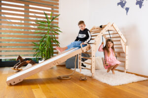 v domácí hřiště plné pohybu a zábavy. Dřevěné průlezky Faber od české značky Antonie Emma snadno přestavíte a doplníte o houpačku či další prvky, takže děti jen tak neomrzí. Díky vysoké nosnosti je využije i puberťák jako domácí posilovnu. Vyberte si prvotřídní českou kvalitu z certifikovaného dřeva. Faber je hravý, bezpečný a designově čistý. ANTONIE EMMA, www.antonieemma.cz