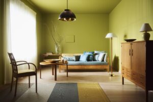Letošní rok ale přeje i novým podobám žluté – jasnějším, sytějším a výraznějším. Vedle teplých slunečních tónů se objevují také zelené akcenty. Tento směr potvrzuje i barva roku 2026 od společnosti PPG: živý olivově limetový odstín Secret Safari. Je dostatečně jemný, aby prostor zklidnil, a zároveň mu dodal energii a vitalitu. Díky své variabilitě nabízí široké využití. Jeho botanická estetika navíc do interiéru vnese moderní a svěží nádech.