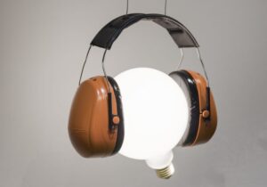 Elementární forma lampy osazené žárovkou byla pro Inga Maurera výchozím bodem v mnoha tvůrčích dobrodružstvích, počínaje projektem Bulb z roku 1966. Značka založená německým designérem, který zemřel v roce 2019, pokračuje v cestě, kterou vytyčil, a zachovává si svůj charakteristicky ironický nadhled. Lampa Shhh! si hraje s divákovým vnímáním funkce a formy. Žárovka, která se na první pohled jeví jako zdroj světla, ve skutečnosti slouží k rozptylu světla, zatímco sluchátka skrývají dva bodové reflektory.