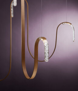 Bois de Cristal je modulární koncept osvětlení, využívající skládanou překližku, měď a strukturované tavené sklo, zvýrazněné LED osvětlením. LASVIT