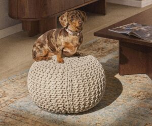 Ručně pletený puf Dori v jemném odstínu greige je stylový doplněk, který s sebou přináší útulnost i moderní akcent. Díky své lehké konstrukci poslouží jako pohodlné sezení, podnožka nebo odkládací plocha a snadno se přemístí podle potřeby. WESTWING