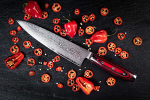• Super GOU 161 – druhá nejvyšší řada s elegantním designem laděným do červené. 161 vrstev oceli a jádro z SG2 dodávají noži mimořádnou odolnost i krásu.